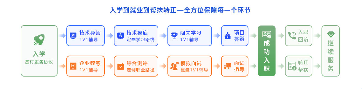 企业教练1V1辅导+综合测评定制职业路径+模拟面试复盘1V1辅导+就业服务试用期帮扶
